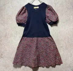 美品✨総柄ワンピース 昭和レトロ 古着 ヴィンテージ 希少 派手 ウエスト調整 スクエア