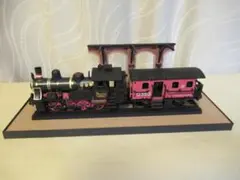 D51型蒸気機関車の組み立てキット、レールと車両部品付き。