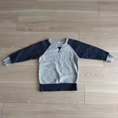 ピザモチーフのグラフィックが特徴のネイビーの長袖トレーナー。
