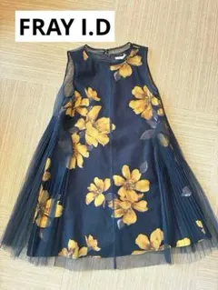 【良品】FRAY I.D 異素材ドッキング ワンピース パフスリーブ サイズ1