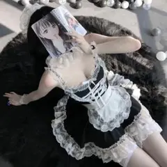 ブラックメイド服 レース付き