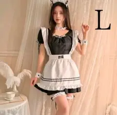 レース付き襟とパフスリーブが可愛いメイド服のワンピースです。