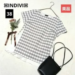 【インディヴィ】カットソー マスタード 38 M 綿 ストレッチ 半袖 美品