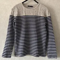 ニットとストライプのレイヤードデザインが特徴のSHIPSの長袖トップス。