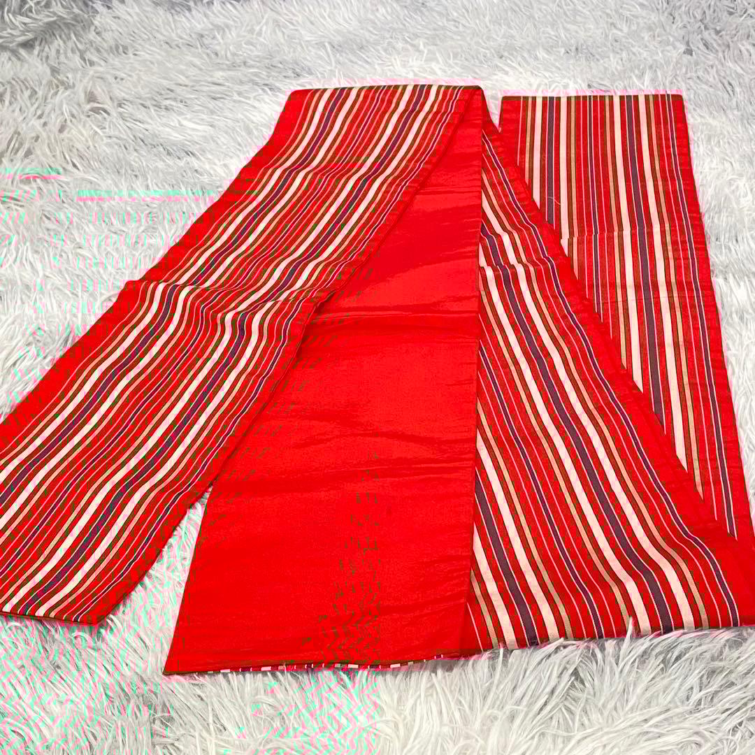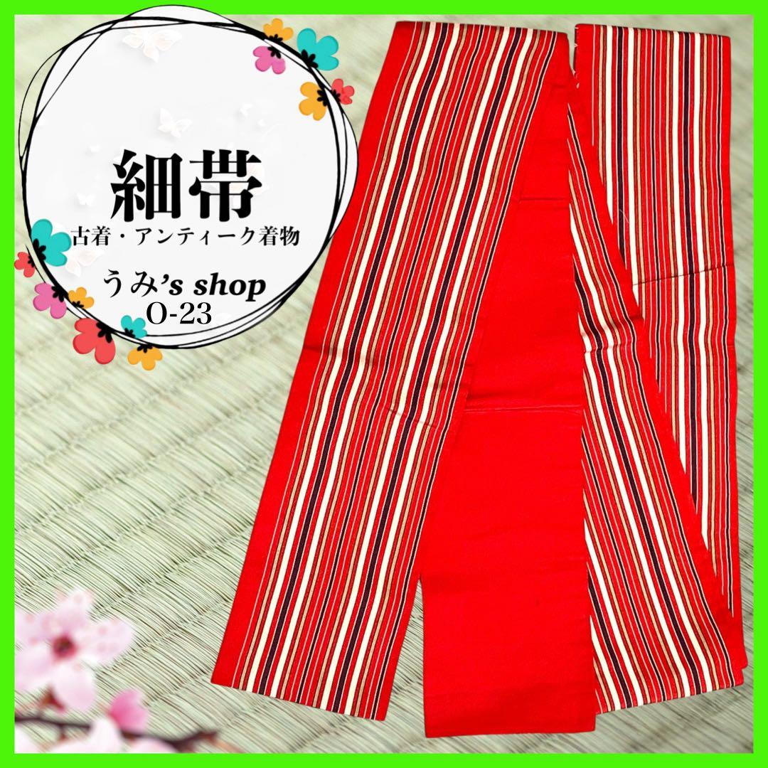 希少 細帯✨️横縞模様 赤色 浴衣 紬 小紋 高級品 絹 昭和レトロ 大正ロマン