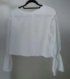 Bab bou jeloud バブブージュルード シフォン 楊柳 ブラウス オリーブグリーン シアー シャツ 長袖 プリーツ 長袖シャツ シンプル 合わせやすい 浅め ボートネック 控えめ フレアスリーブ 縦にシボ 皴が気にならない 表面感を楽しる