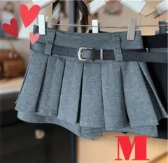 プリーツスカート ショーパン M ベルト 韓国 Y2K グレー 秋冬 ミニ
