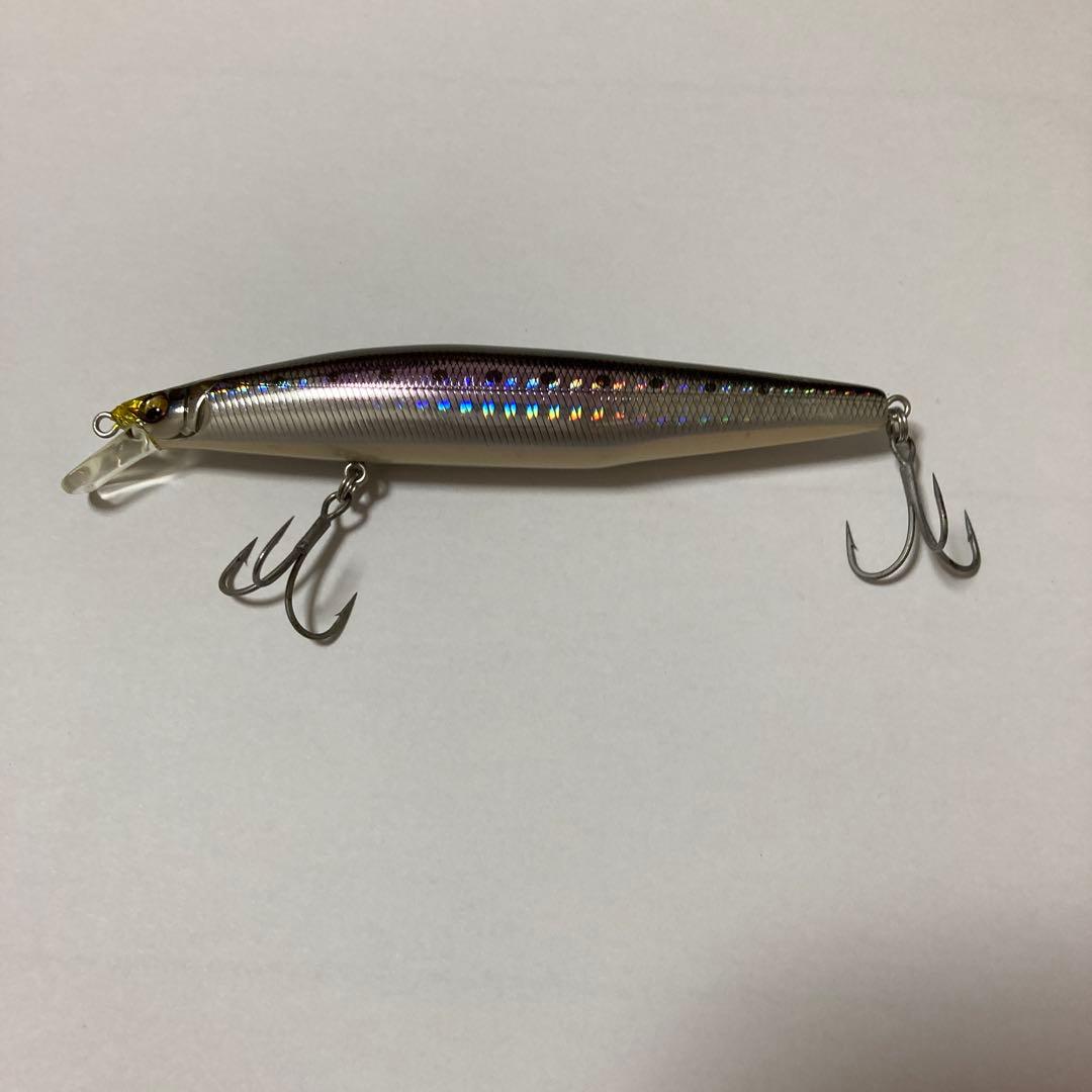 光沢のあるシルバーミノー・プラグ、3フック付きで高い集魚効果。