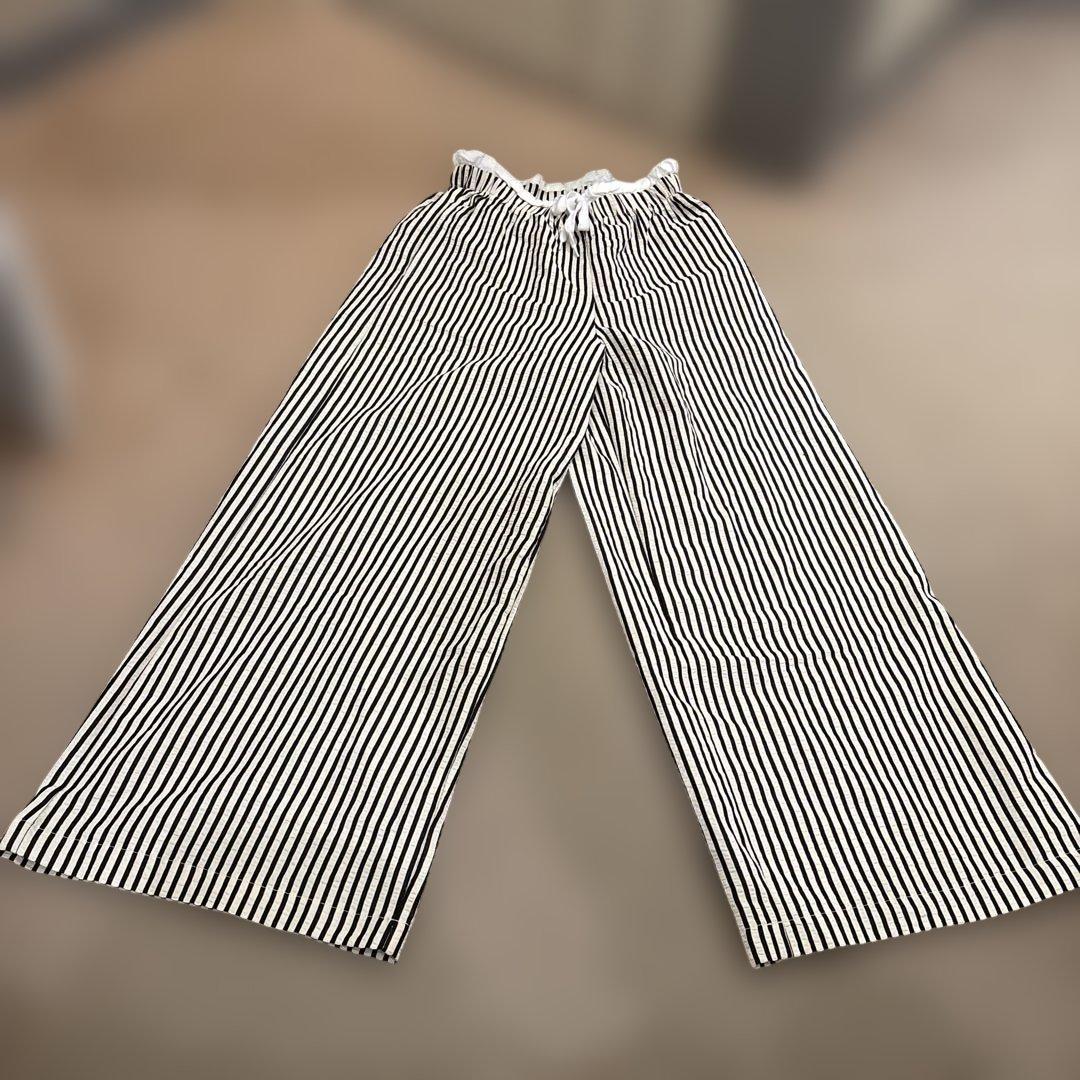 ストライプ柄のMサイズワイドパンツ、快適な着心地。う
