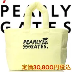 PEARLY GATESのロゴが施された円筒形のホワイトゴルフバッグ。内部はナイロン素材で、耐久性があります。