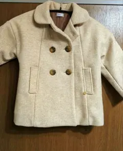KIMURATAN(キムラタン)で購入したLaChiave(ラキエーベ)のダブルブレスト風デザインの落ち着いたキャメルブラウンカラーが秋冬にピッタリのピーコートです。