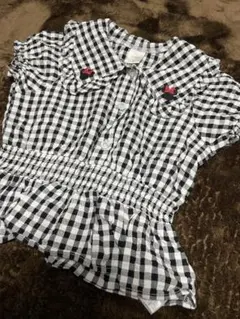 フラワープリントのフリル袖シャツ、サイズ90、ブラックとホワイトの配色。