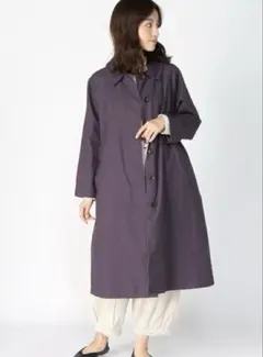 フード付きのネイビーのロングコート、キルティング裏地で暖かさを提供。