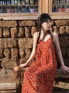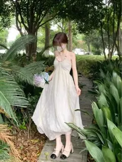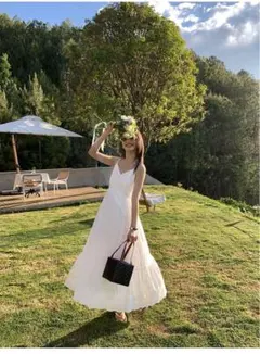 韓国 服 レディース ワンピース 白 ノースリーブ 花柄ワンピース ロング 人気