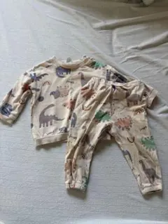 ミッキーマウスのプリントが施されたマスタード色の長袖トレーナー。