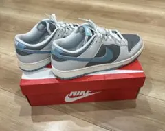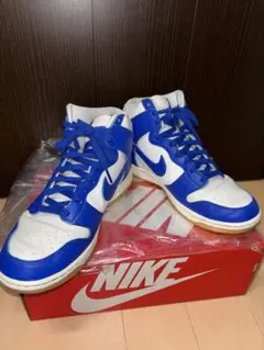青いレザーのNike Airスニーカー、スタイリッシュなデザイン。