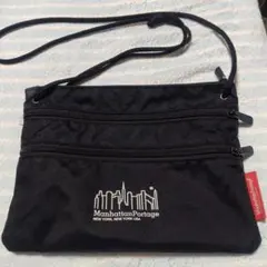 調整可能なストラップと複数のジッパーポケットを備えたナイロン製のブラックサコッシュ。