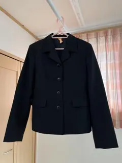 ベーシックな型で生地はサラサラしていてグレーに近いブラックで小さい格子模様があります。