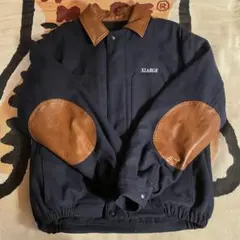 XLARGEのスタジャン、ゴリラロゴ刺繍、レザー袖。