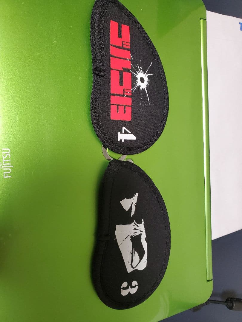 - デザイン特徴: 弾痕のデザインとキャラクターのシルエット