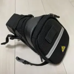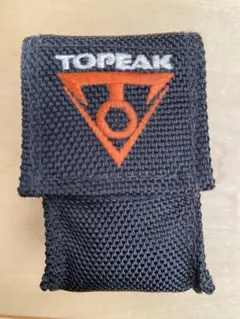TOPEAK製の黒いナイロンバッグで、2つのポケットがあり、ベルト式で取り付け可能。