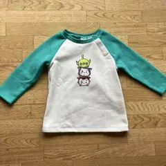 水色のトラ柄Tシャツ、スナップボタン付きで着脱簡単です。