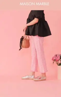 メゾンマーブル フリルギンガムパンツ
