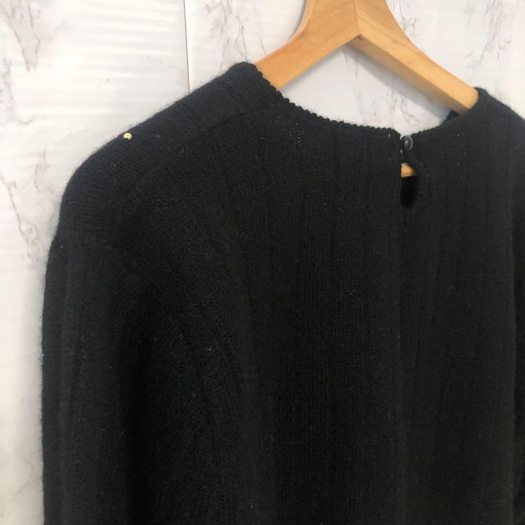 ナイガイ ニットセーター L ビジュー ネイビー ナチュラルガーリー リボン