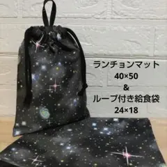 給食セット★車×ストライプ・黄緑★40×60ランチョンマット&巾着袋