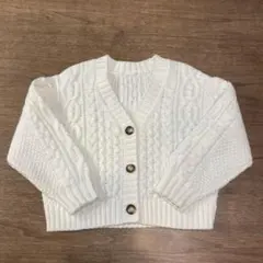 アイボリーのGU製ボタン付きカーディガン、綿混素材で快適な着心地。