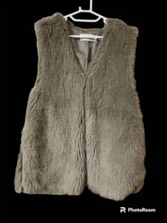 ベージュのファーベスト、カジュアルスタイルに最適。