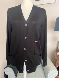 ラルフローレン エンブレム ビジュー 刺繍 ウール&カシミヤカーディガン 黒 M