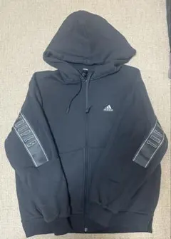 蛍光イエローのストライプが特徴のグレーのフルジップパーカー。