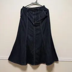 GUフレアスカート【M】ネイビー 光沢 きれいめ
