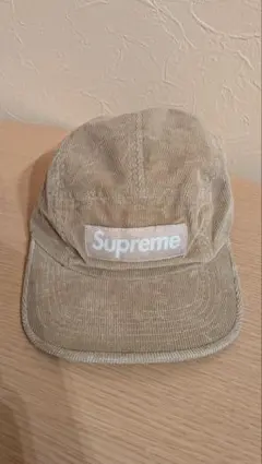 ネイビーのSupremeキャップ、テクニカルファブリック使用、調整可能なバックストラップ付き。
