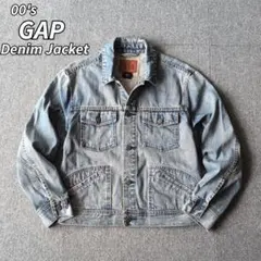 ライトブルーのGAPデニムジャケット、フロントポケット付きでカジュアルに最適。