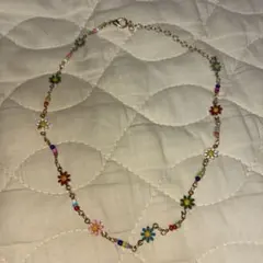 このネックレスは、花の形状が特徴的で、華やかさを演出します。
