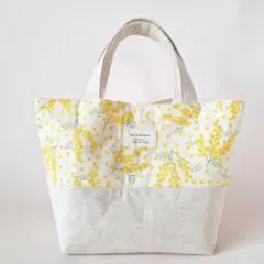 【ハンドメイド】トートバッグ エコバッグ 表裏柄違い ミモザ ピンク