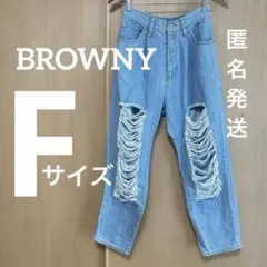 BROWNY デニムパンツ ハイウエスト ダメージ加工