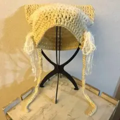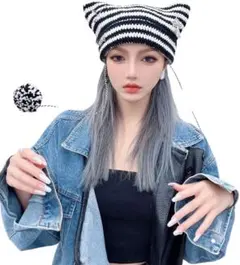 新品未使用 猫耳 ホワイトニット帽 Y2K ニット帽 春 ビーニー 猫耳帽