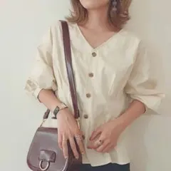 バックリボンデザインの長袖ブラウス、軽やかなポリエステル素材。