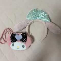 - デザイン: 黒いフェルト素材のカチューシャ、ピンクのドクロの顔とリボン付き