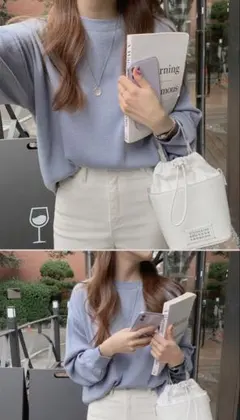 【未使用】DHOLIC 韓国ファッション カフスボタンニット ブルー
