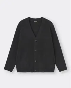 柔らかいニット素材のダークグリーンボタン付きカーディガン。