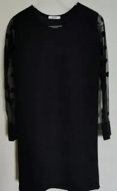 ☘️黒地に花柄の長袖カットソー、ラウンドネックデザイン。