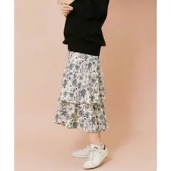 KBF+ 花柄フレアスカート ラベンダー フリーサイズ ケービーエフプラス