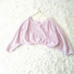 リブ編みのピンク長袖トップス、サイドボタン付きでカジュアルスタイルに最適。