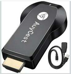 グレーのChromecast、電源アダプターとUSBケーブル付き。