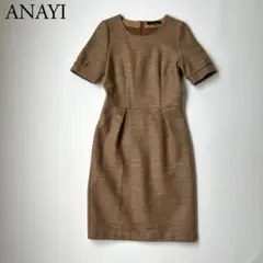 アナイ ANAYI 半袖 膝丈ワンピース ツイード素材 異素材 オレンジ M