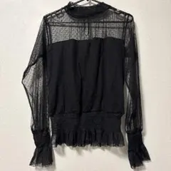 フリルとバルーンスリーブが特徴的なホワイトブラウス。